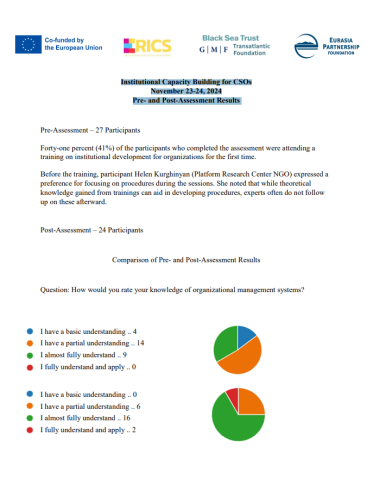 Forty-one percent (41%) of the participants who completed the assessment were attending a training on institutional development for organizations for the first time.