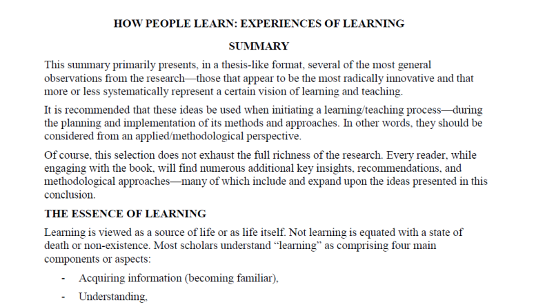 HOW PEOPLE LEARN: EXPERIENCES OF LEARNING. SUMMARY