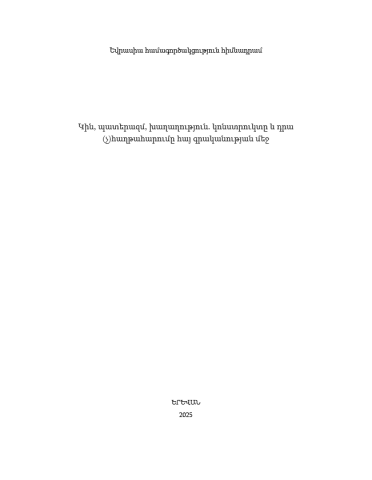 The analytical essays in this collection present the multifaceted interrelations between women, war, and peace as reflected in texts from Armenian literature and folklore, in an accessible manner of popular scholarship. Positioned at the intersection of academic thought and artistic texts, the works offer innovative critical analyses of the ideas transmitted through literature and folklore - ideas that shape worldviews and dictate behavioral norms regarding the role and significance of women. The book explores the complexities of relationships between women and men, mothers and sons, within the contexts of war and peace, as portrayed in various Armenian literary texts. This collection is a rich repository that will help readers understand the historical dynamics, transformations, and developments of the roles and behaviors expected from women in Armenian society - both in times of war (and crises in general) and in periods of peace - as reflected in Armenian literature.